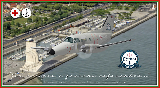 | Embraer EMB-121B Xingu II Portuguese Navy VII Centennial over the Discoveries monument, Lisbon, Portugal |